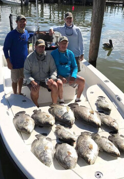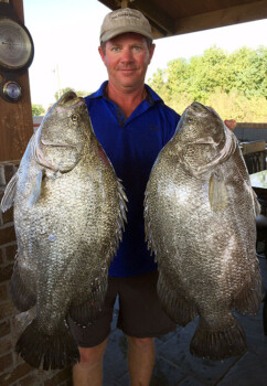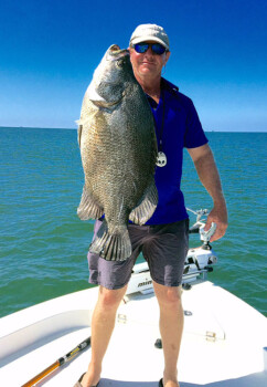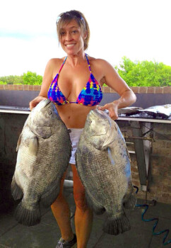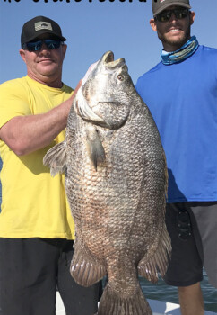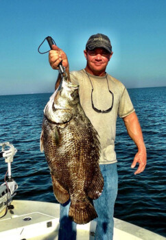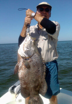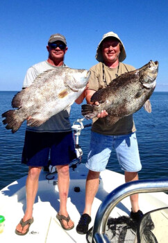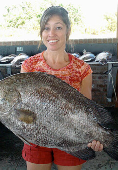 These pre-historic fish are one of my favorites. Maybe it’s because they are so rare. They look like a crappie, but can range from 8-30 lbs on any given hook up. My average Triple Tail taken is between 15-18 lbs. My biggest is 35.8 pounds which made number 3 in the state! Customers have caught them 20 lbs plus. October is generally the month to get them, September being the second best. These fish love to hang around rigs, pilings, or anything floating on the surface. They are extremely powerful and may even jump out of the water several times before finally landing them. They make excellent table fare!